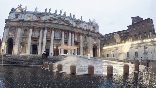 האפיפיור בכיכר סן פייטרו השוממת לנוכח ההסגר שהוטל על רומא, בשבוע שעבר. “להיות ברומא כעת זו חוויה מפכחת" צילום: ABACAPRESS.COM